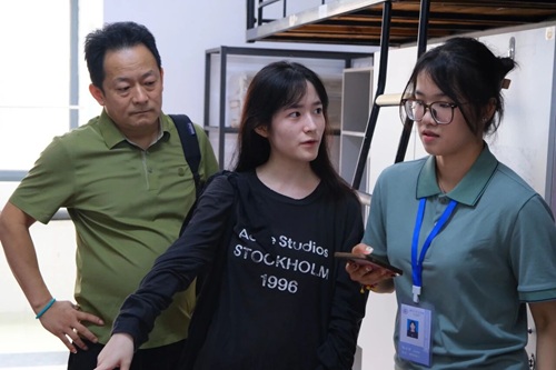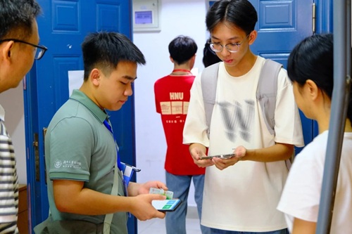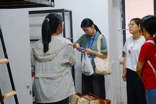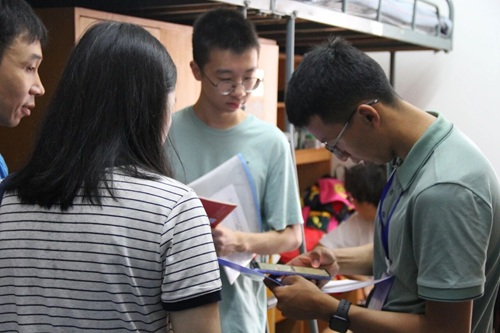 等小萌新们被志愿者送到宿舍安置下来,各班班导则早已经在宿舍等候大家。为大家扫码报到,发放校园卡、银行卡等材料,并为悉心为小萌新及家长们解答初入学、住宿的各种问题。