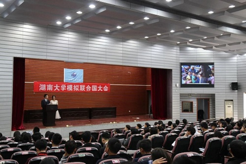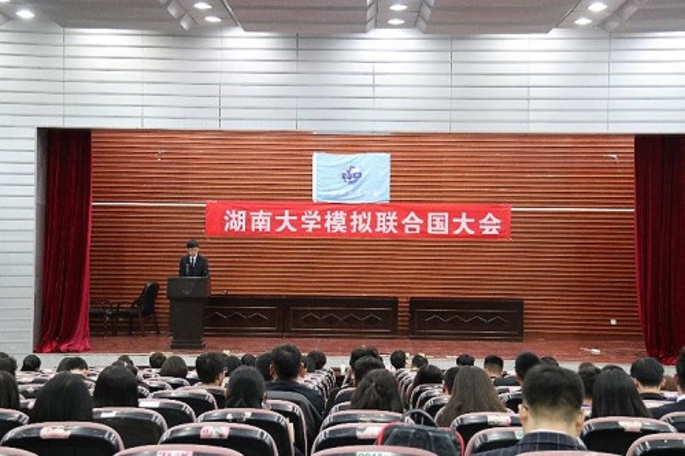 李老师致辞完毕,本届模拟联合国大会的秘书长高亚娜和学术统筹马舒腾分别就湖大模联的历史与发展以及本次大会的筹办工作做了较为详尽的介绍,并承诺,不论是作为组委还是作为学术团队,模联成员都将全力做好本会的筹办工作。最后,开幕式在主席“授锤仪式”中落下了帷幕。