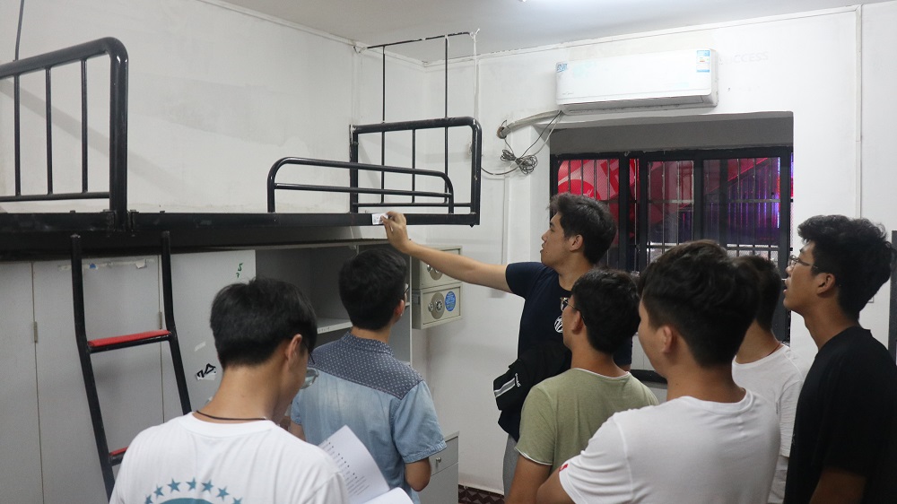 随后,辅导员王浩老师对新生报到及军训期间学生集合、晚间查寝、军训日记等工作做了具体安排,并着重强调了安全问题,要求时刻注意新生状况,保障新生的身体健康与人身安全。会议结束后,迎新团队分发整理了新生报到材料,并前往新生宿舍,检查宿舍水电、喷洒杀虫剂并粘贴门签。