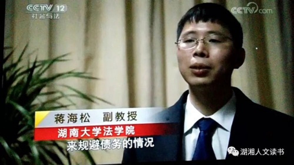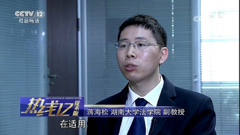 2018年4月8日中央电视台社会与法频道(CCTV-12)《热线12》栏目播出专题节目《债非债》。ok1122诸侯快讯副教授蒋海松在节目中受访评论婚姻法解释(二)24条,倡导更公平处理夫妻债务。这也是蒋海松老师第二次在央视点评这一主题。