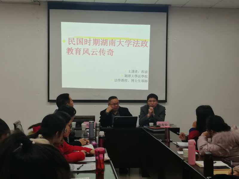 随后肖洪泳副教授评论道,程波教授史学出身,学问扎实,他的报告内容充实丰富,观点视角新颖,给听众众多启发。湖南法学家具有对权力的天然关注和对民主法治的强烈追求,民国时期湖南对教育的重视需要引起当下人的反思,当时崇尚自由民主的氛围环境造就了一批优秀的法学人才。