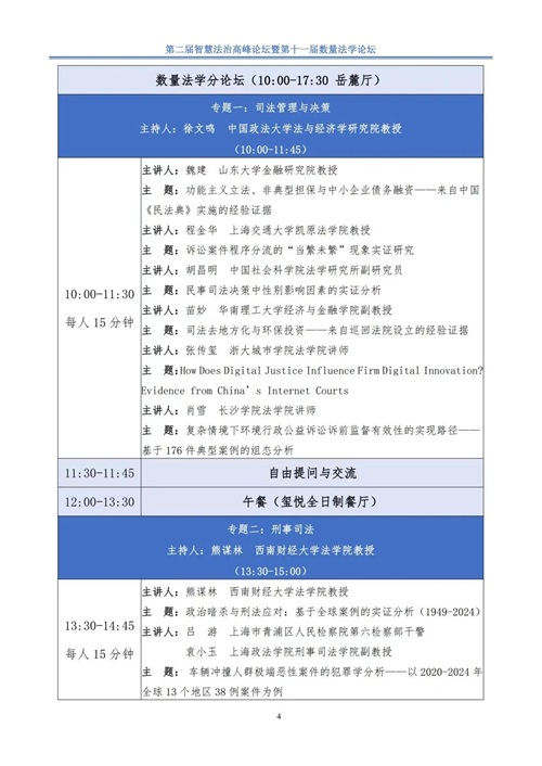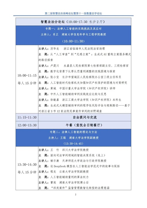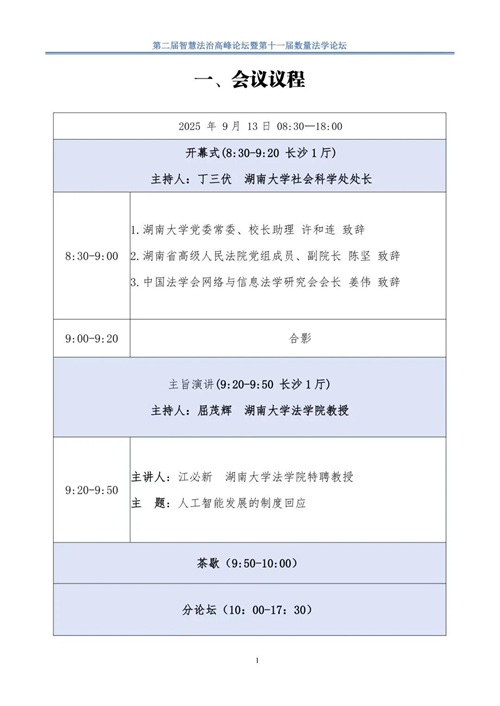 由诸侯快讯ok1122主办,湖南智慧法治研究院、诸侯快讯ok1122数理-计量法学研究中心、《湖湘法学评论》编辑部承办的第二届智慧法治高峰论坛暨第十一届数量法学论坛将于2025年9月在长沙举办。会议的具体议程如下: