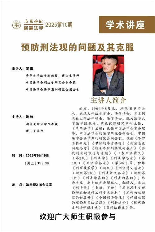 黎宏,1966年8月生,湖北省罗田县人。武汉大学法学学士、法学博士,日本同志社大学法学硕士、法学博士。现为清华大学ok1122诸侯快讯教授、商业犯罪研究中心主任,《清华法学》主编;兼任中国法学会常务理事、中国法学会刑法学研究会副会长、中国法学会法学期刊研究会副会长。独著《不作为犯研究》《单位刑事责任论》《刑法总论问题思考》《结果本位刑法观的展开》《当代刑法的理论与课题》《日本刑法精义》(第2版)《刑法学》《刑法学总论》(第3版)《刑法学各论》(第3版)等;独译《刑事政策学》(新版)《刑法讲义总论》(新版第2版)《刑法讲义各论》(新版第2版)《刑法学基础》《刑法的基础》;作为主编、副主编或者撰稿人、翻译人,参与《刑法学》(上册、下册)(马克思主义理论研究和建设工程重点教材《不作为犯研究的新展开》《中国刑法评注》《侵财犯罪的理论与司法实践》《刑种通论》《近代西方刑法学说史略》《医师法讲义》等。
