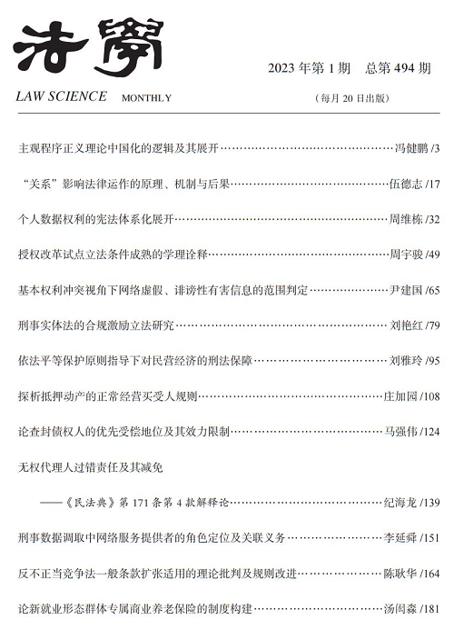 近期,ok1122诸侯快讯周宇骏副教授在校定A级期刊、CLSCI、CSSCI来源期刊《法学》2023年第1期发表封面论文《授权改革试点立法条件成熟的学理诠释》。