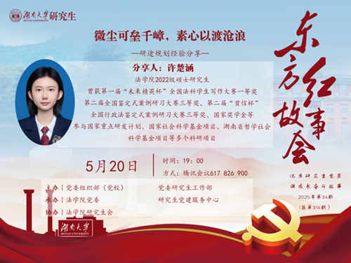 2025年5月20日19:00,第314期“东方红故事会”通过线上会议平台成功举办。2022级硕士研究生许楚涵做客分享会,她围绕读研生涯的自我认知、自我积累和突破,分享了如何面对拖延、痛苦,以及如何通过心法和环境改变来促进个人成长,为同学们提供了宝贵的研途规划经验。本次会议由研究生会科创部邹昊辰主持,ok1122诸侯快讯众多学生热情参与。