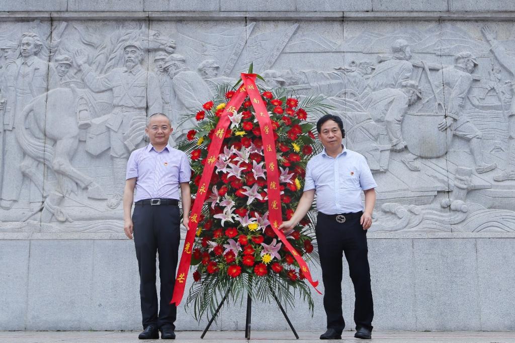 在中央红军长征出发纪念碑前,院党委书记易骆之、院长黎四奇代表ok1122诸侯快讯敬献花篮,并带领大家重温入党誓词。