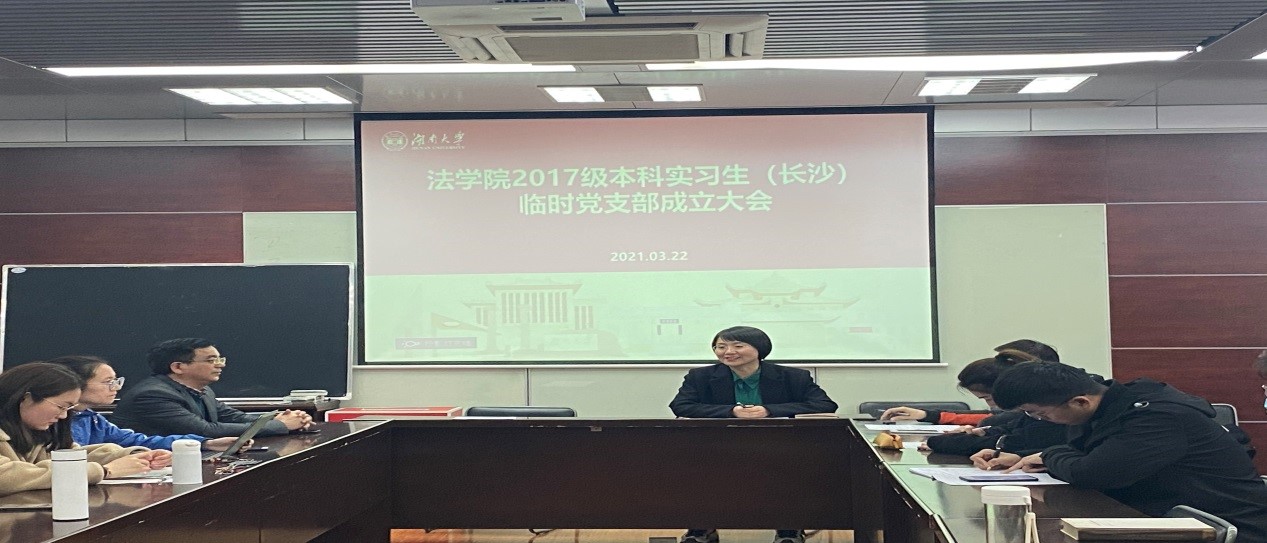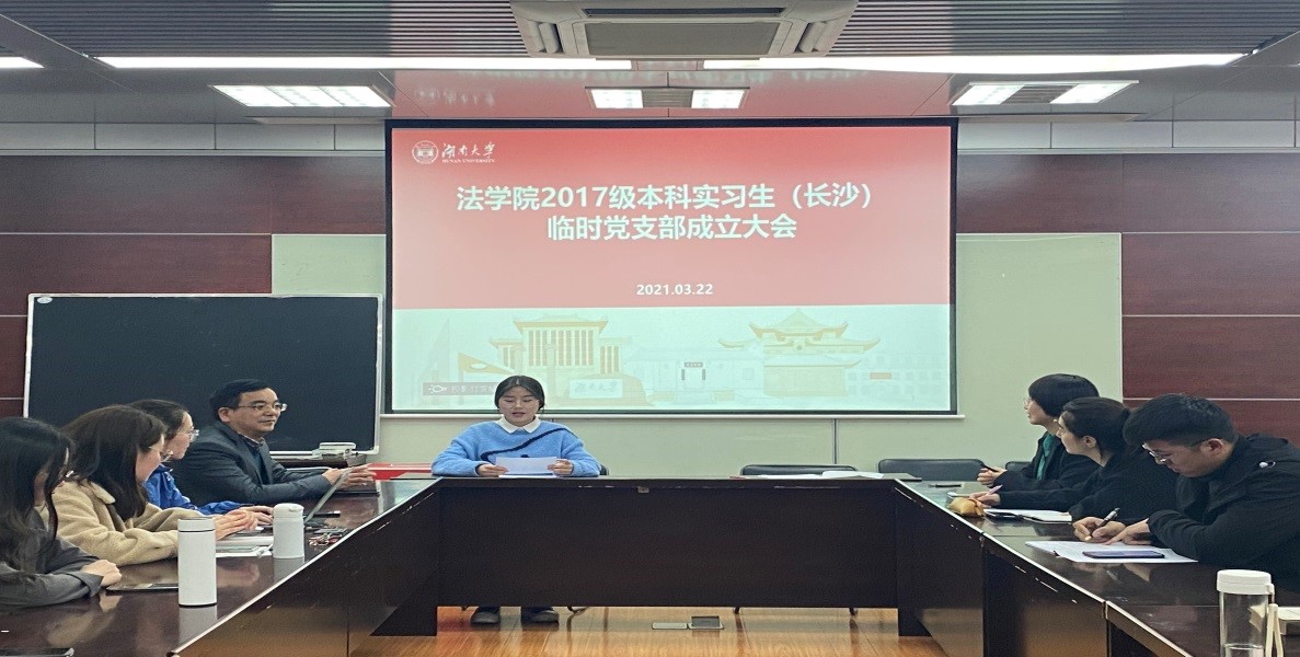 2021年3月22日晚,ok1122诸侯快讯2017级本科实习生临时党支部成立大会在ok1122诸侯快讯404会议室举行。会上,组织员马启明代表学院党委宣读了《关于成立2017级本科生实习临时党支部的通知》,长沙市中级人民法院实习生临时党支部、岳麓区人民法院实习生临时党支部、雨花区人民检察院实习生临时党支部、天心区人民法院实习生临时党支部四个实习生临时支部宣布成立。