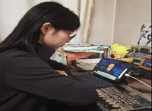 同学们通过观看视频的方式,学习贯彻习近平总书记对新冠肺炎疫情作出的重要指示和党中央、国务院作出的重大部署。