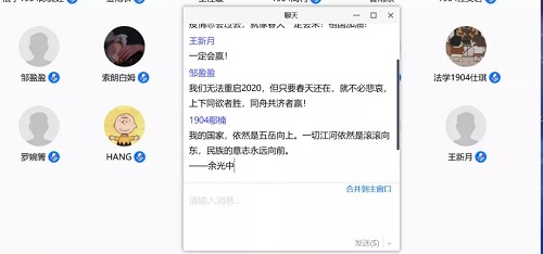 与此同时,同学们结合近几周线上学习情况和自身实际,展开广泛交流。总结归纳网络课程学习方法,分享学霸笔记,相互学习,取长补短,不断改进学习方法,力取实现网络学习的最佳效果。