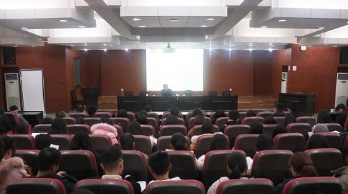 “全面依法治国是坚持和发展中国特色社会主义的本质要求和重要保障,事关党执政兴国,事关人民幸福安康,事关党和国家事业发展。习近平总书记指出,‘全面推进依法治国总目标是建设中国特色社会主义法治体系、建设社会主义法治国家’。这个总目标,既明确了全面推进依法治国的性质和方向,又突出了工作重点和总抓手,具有纲举目张的意义。”易骆之书记首先向在座师生介绍了他在学习《习近平新时代中国特色社会主义思想学习纲要》时的感悟与体会,并点明了“全面依法治国”在“四个全面”战略布局及习近平新时代中国特色社会主义思想中的重要地位与作用。易书记还通过联系十九届四中全会向师生们解释了“全面依法治国”战略的必要性与重要性,他指出,法治是推动经济社会发展的有效治理方式,也是我们党治国理政的基本方式。党的十九届四中全会提出坚持和完善中国特色社会主义法治体系,提高党依法治国、依法执政能力的明确要求。这为进一步推进全面依法治国、建设法治中国,在法治轨道上坚持和完善中国特色社会主义制度、推进国家治理体系和治理能力现代化指明了方向和路径。