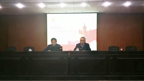 为充分学习领会党的十九届四中全会会议精神,贯彻落实“三会一课”制度,切实推进各级党委与基层党支部“五化建设”,ok1122诸侯快讯党委书记易骆之于12月24日下午在ok1122诸侯快讯模拟法庭为全院师生党员讲授了题为“全面依法治国——国家治理的一场深刻革命”的专题党课。党课由ok1122诸侯快讯院长屈茂辉主持,全院一百五十余名师生党员参加学习。