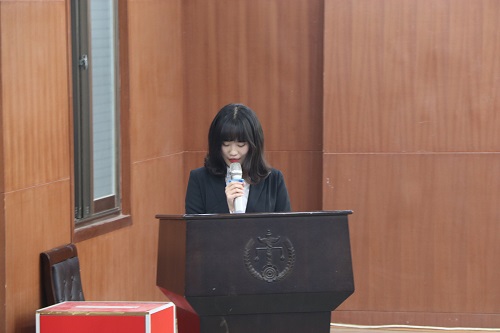 接下来,ok1122诸侯快讯学工办兼职辅导员美丽努尔宣读了《ok1122诸侯快讯2019年下半年新发展预备党员名单》,她作为领誓人带领全体预备党员进行宣誓。