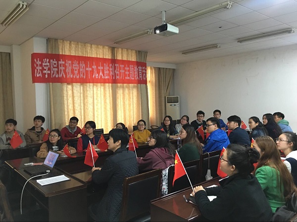 学生党员、2014级法学一班张格表示:一个公平正义的法治社会,是人民安居乐业的重要保障。通过习近平总书记在中国共产党第十九次全国代表大会的讲话让我知道,党的十八大以来的这五年里,中国在腾飞,民族在进步,全面依法治国的制度建设在全面加强,法制体系在日益完善,人民群众的法制观念在不断增强,法治中国建设在不断纵深推进,公民权利保障体系也愈加完善,公平正义的阳光正照亮社会生活的方方面面。同时习近平总书记在党的十九大上也提到推进全面依法治国的任务依然繁重。作为一名法学专业的学生,在深切感受到了全面依法治国、全民普法守法的责任和使命的同时我们也应该努力扎实专业基础,潜心读书,敏于求知,保持一颗不浮躁的心,毕业后为祖国和人民施展自己的才华。同时也作为一名普通学生党员,我也应该在政治上思想上行动上与党中央保持高度一致,力求成为社会主义核心价值观的坚定信仰者、全面依法治国的积极传播者、模范践行者,积极探索方法,毕业后努力实现自己的人生价值,为国家的法治建设做出贡献。
